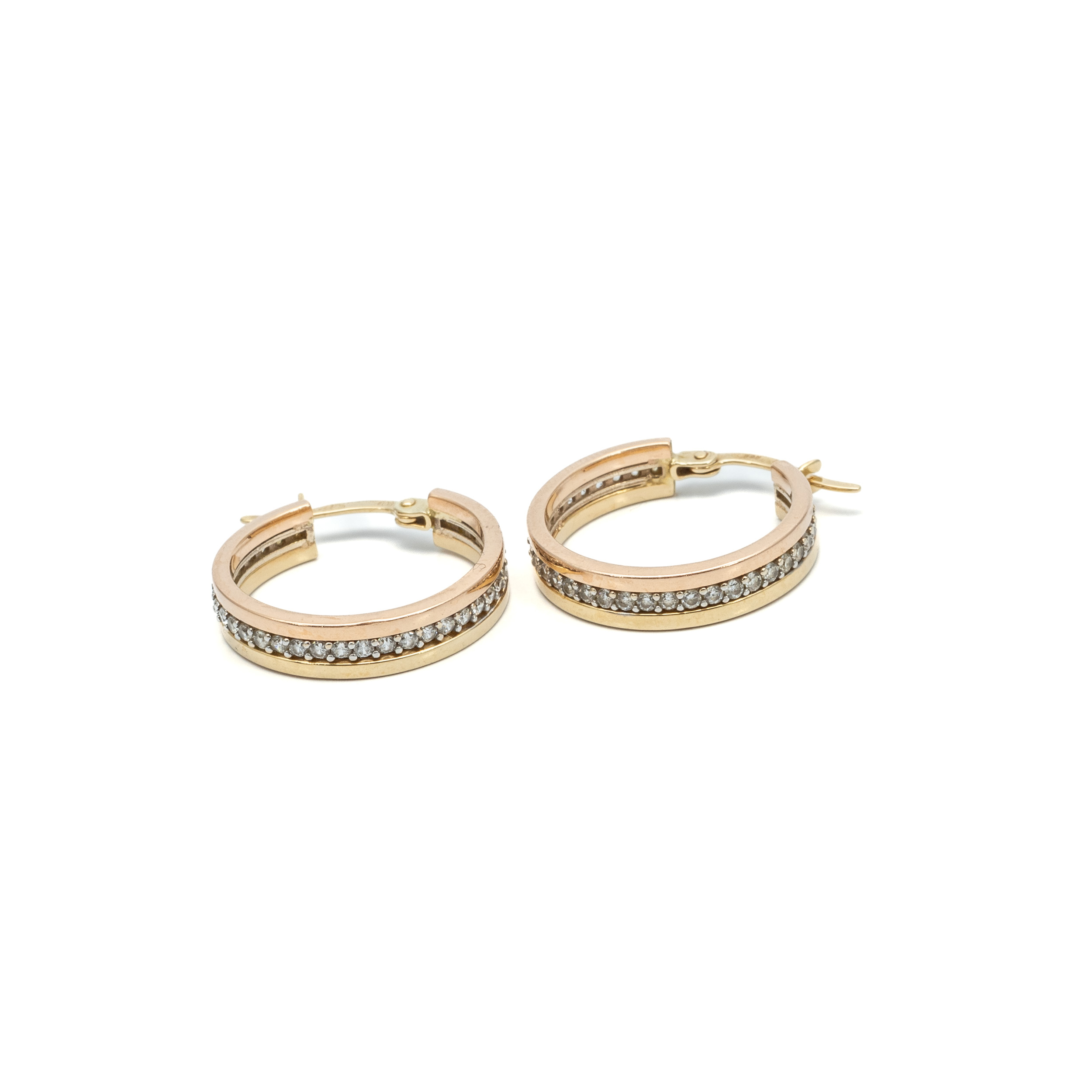 14K Női arany kerek cirkónia köves villás kapcsos fülbevaló