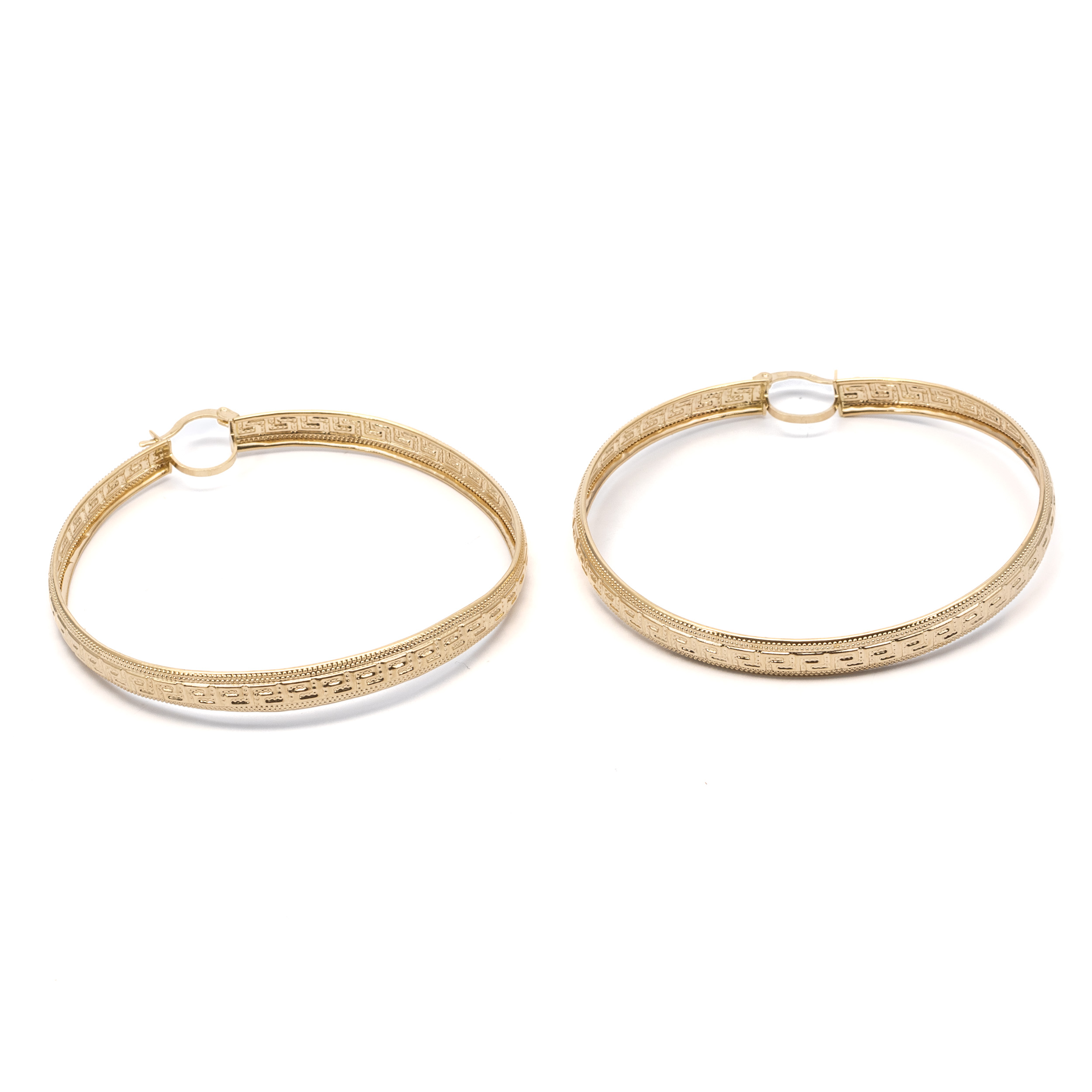 14K Női arany karika görög mintás villás kapcsos fülbevaló