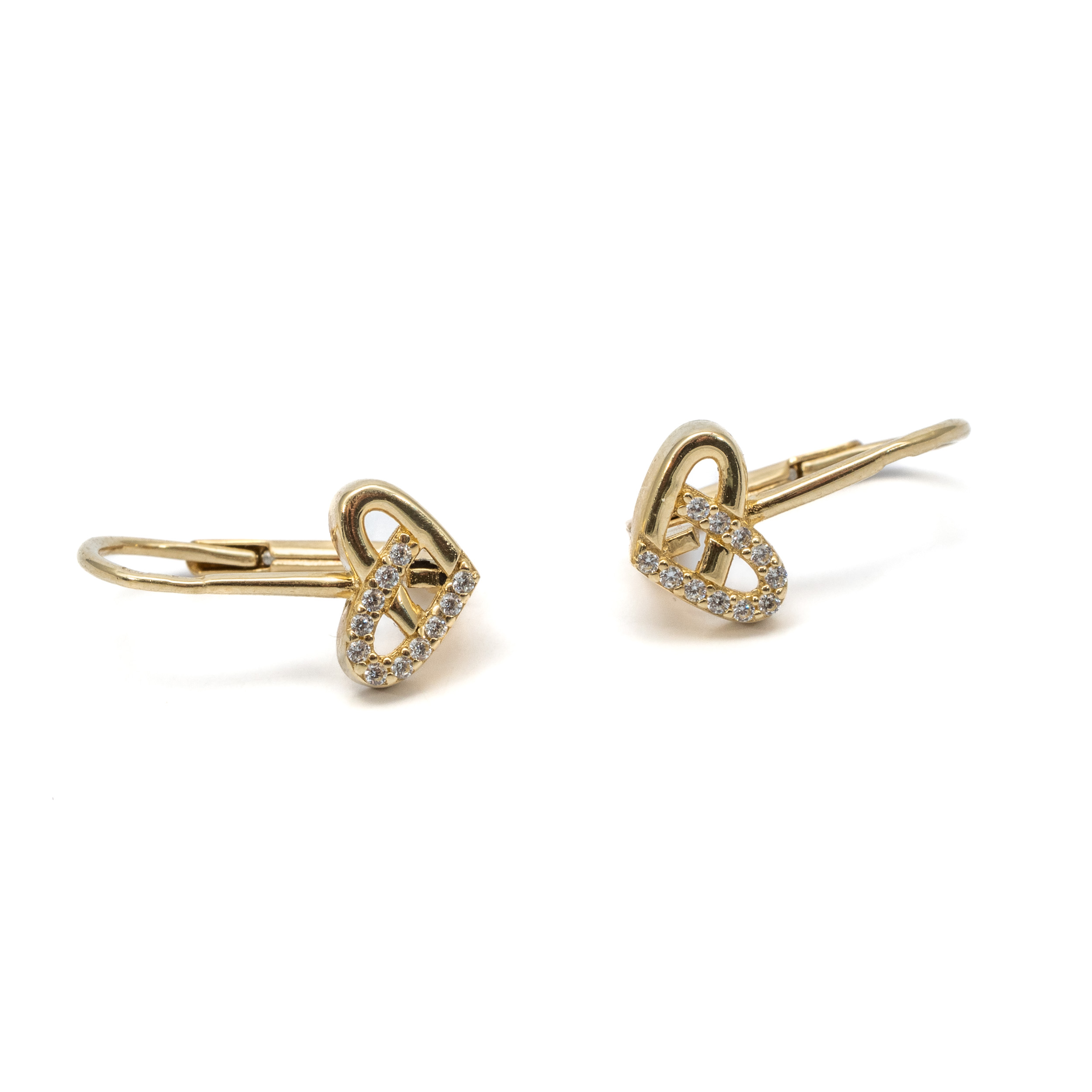 14K Női arany szív mintájú cirkónia köves patentzáras fülbevaló