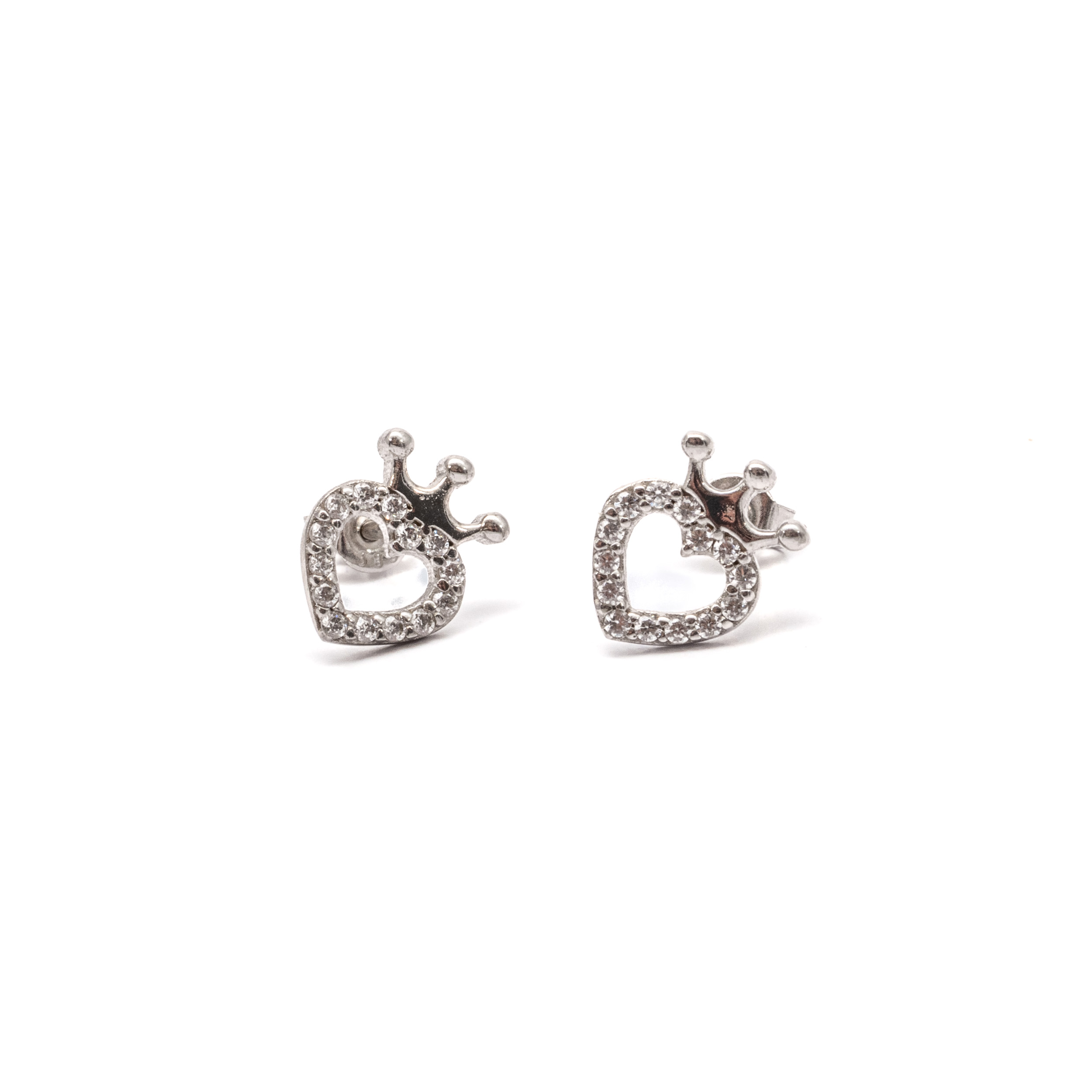 14K Női fehérarany szív-korona motívumos cirkónia köves stekkeres fülbevaló