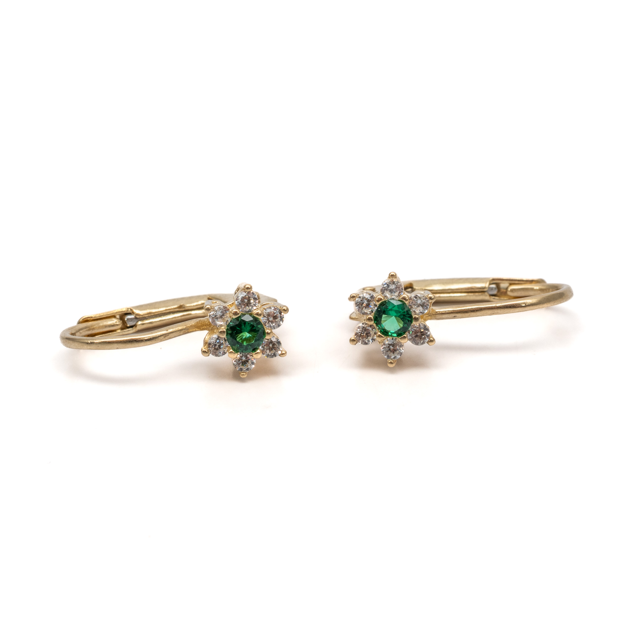 14K Női arany virág mintás fehér-zöld cirkónia köves patentzáras fülbevaló