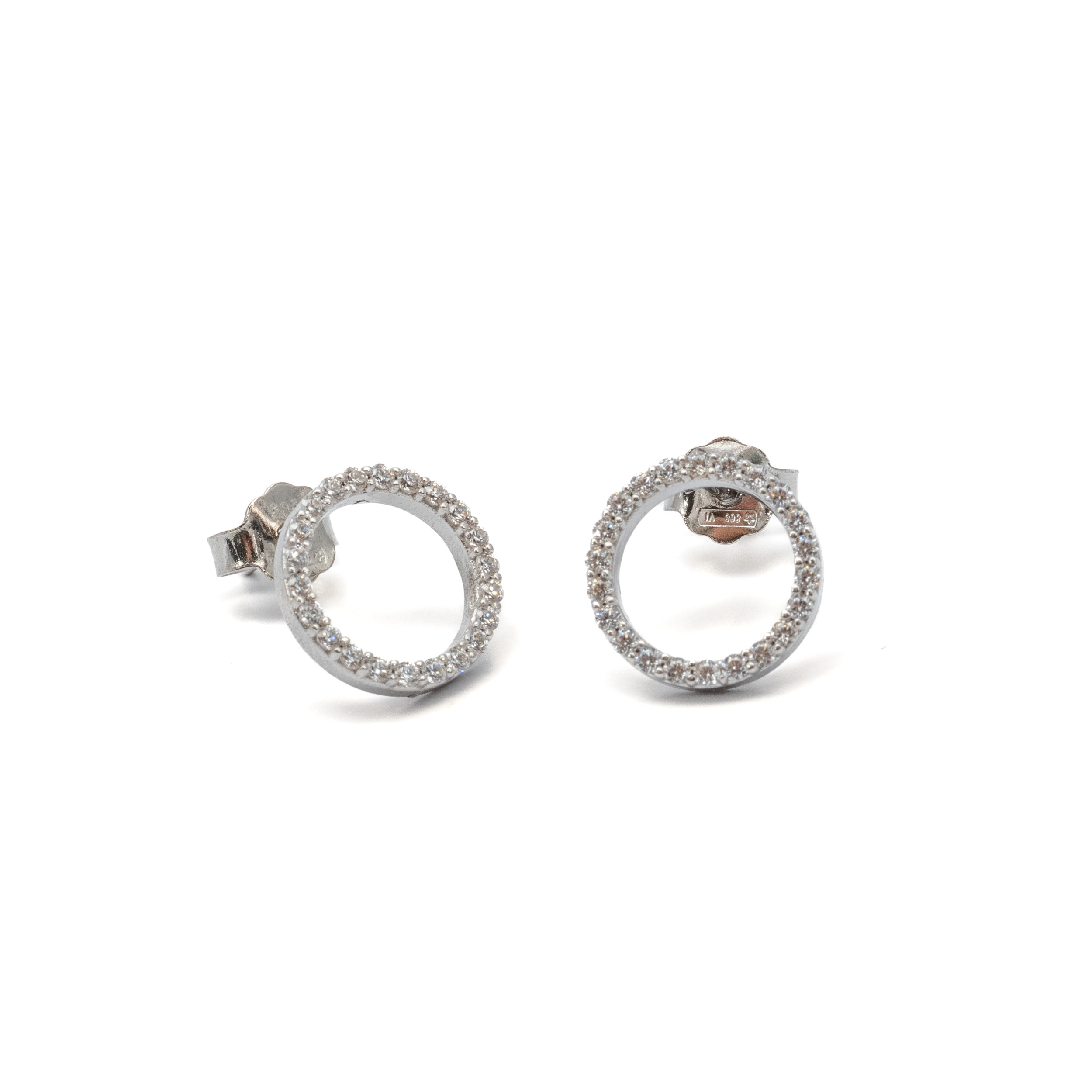 14K Női fehérarany kerek cirkónia köves stekkeres fülbevaló