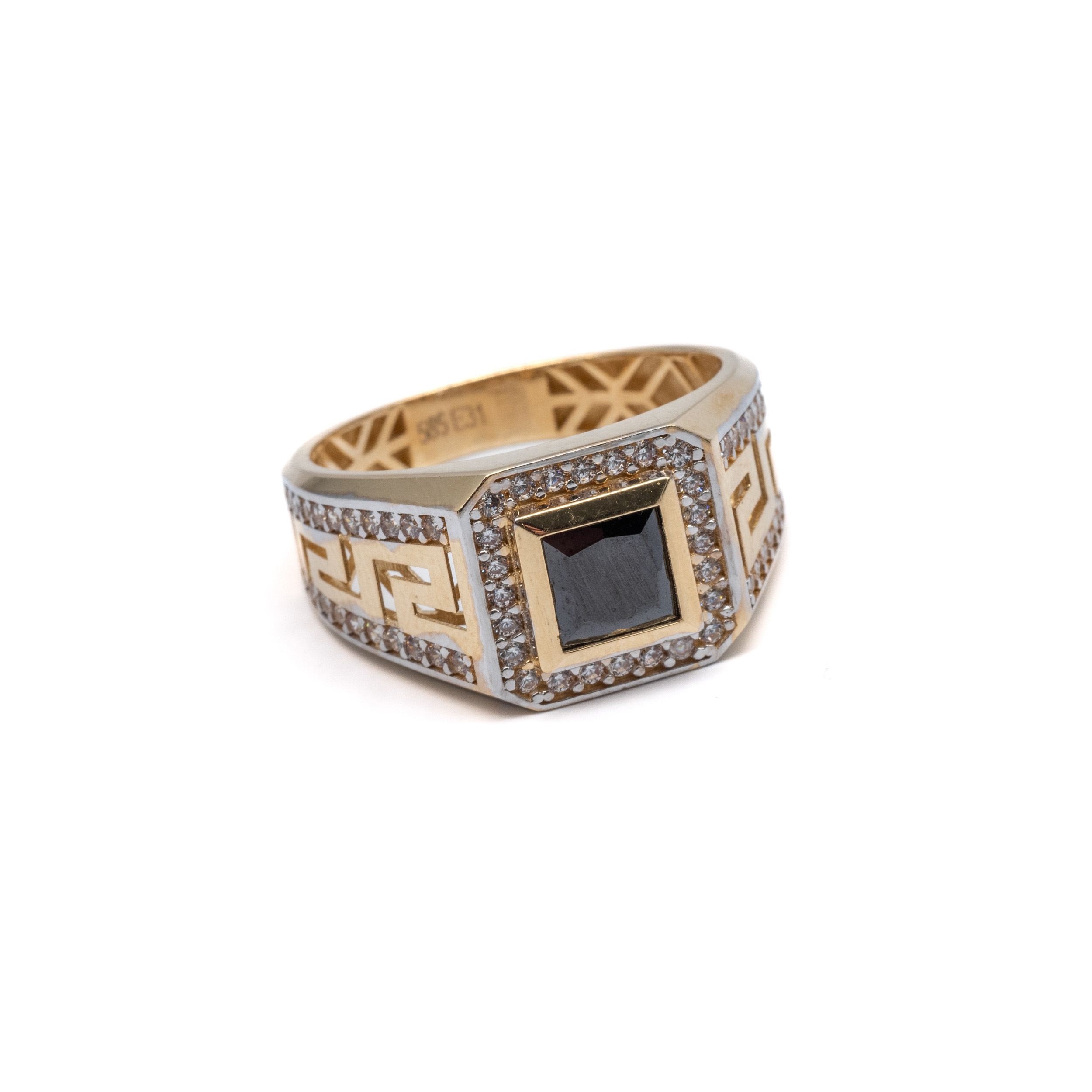 14K Női Uniszex görög mintás fekete-fehér cirkónia köves gyűrű