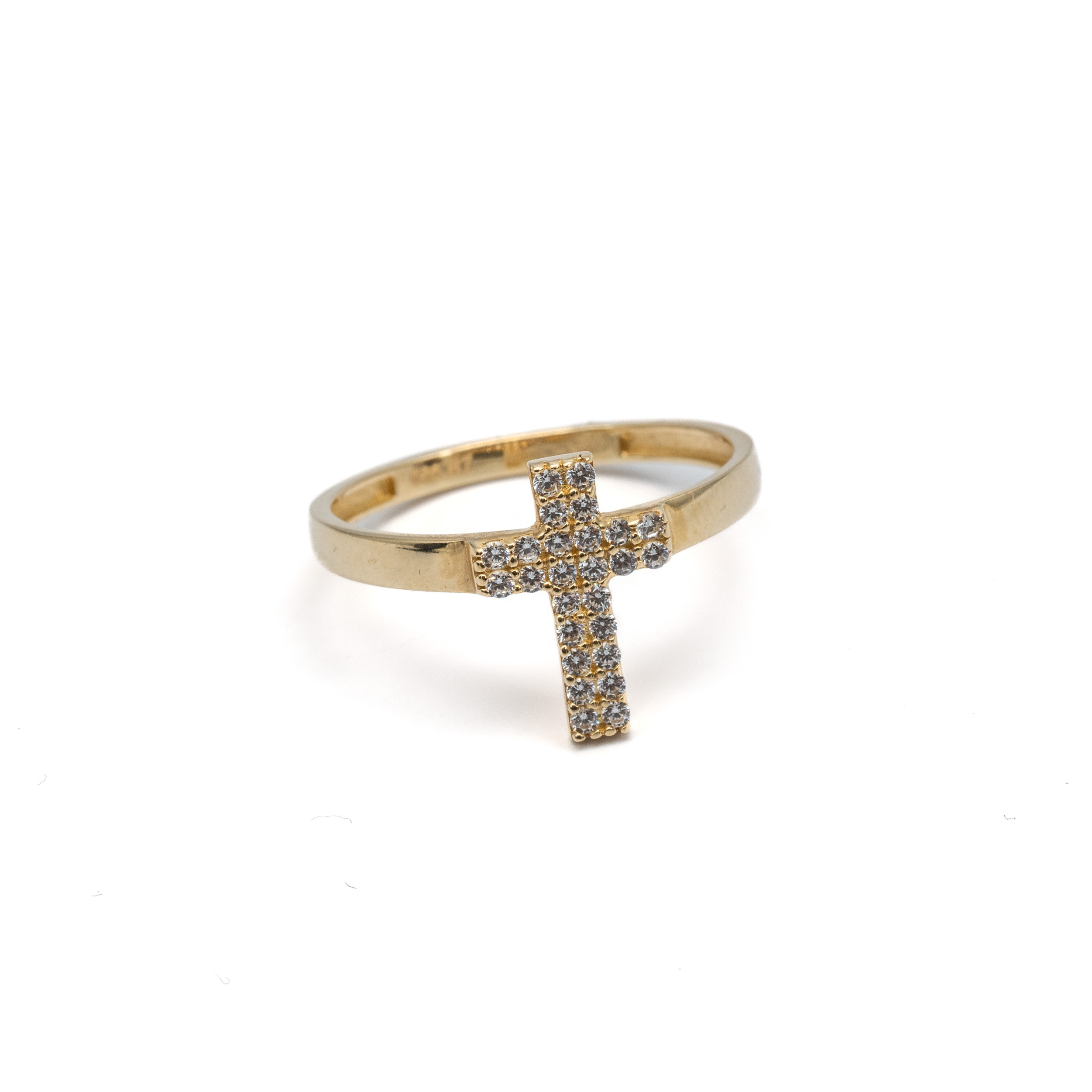 14K Női arany kereszt mintás gyűrű cirkónia kövekkel
