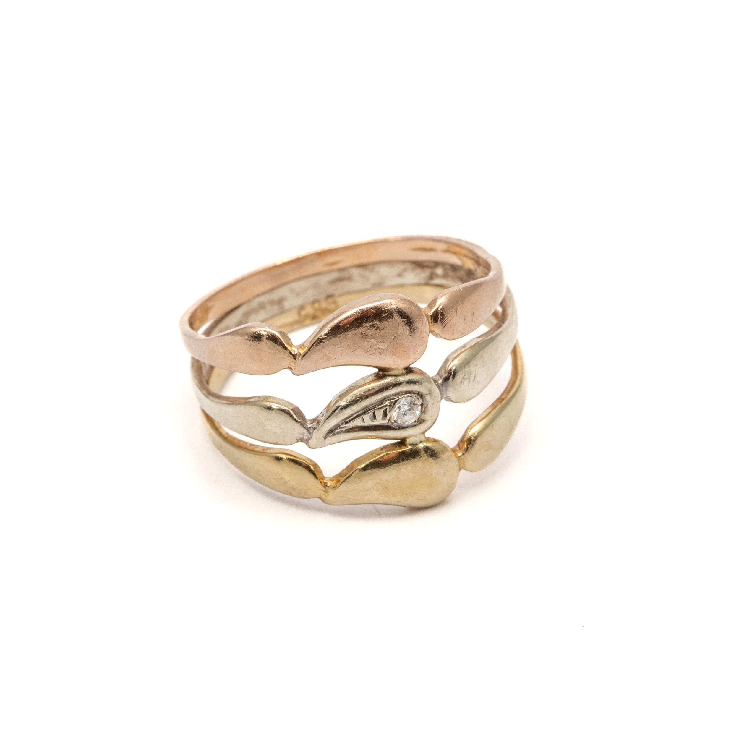 14K Női arany tricolor gyűrű cirkónia kövekkel