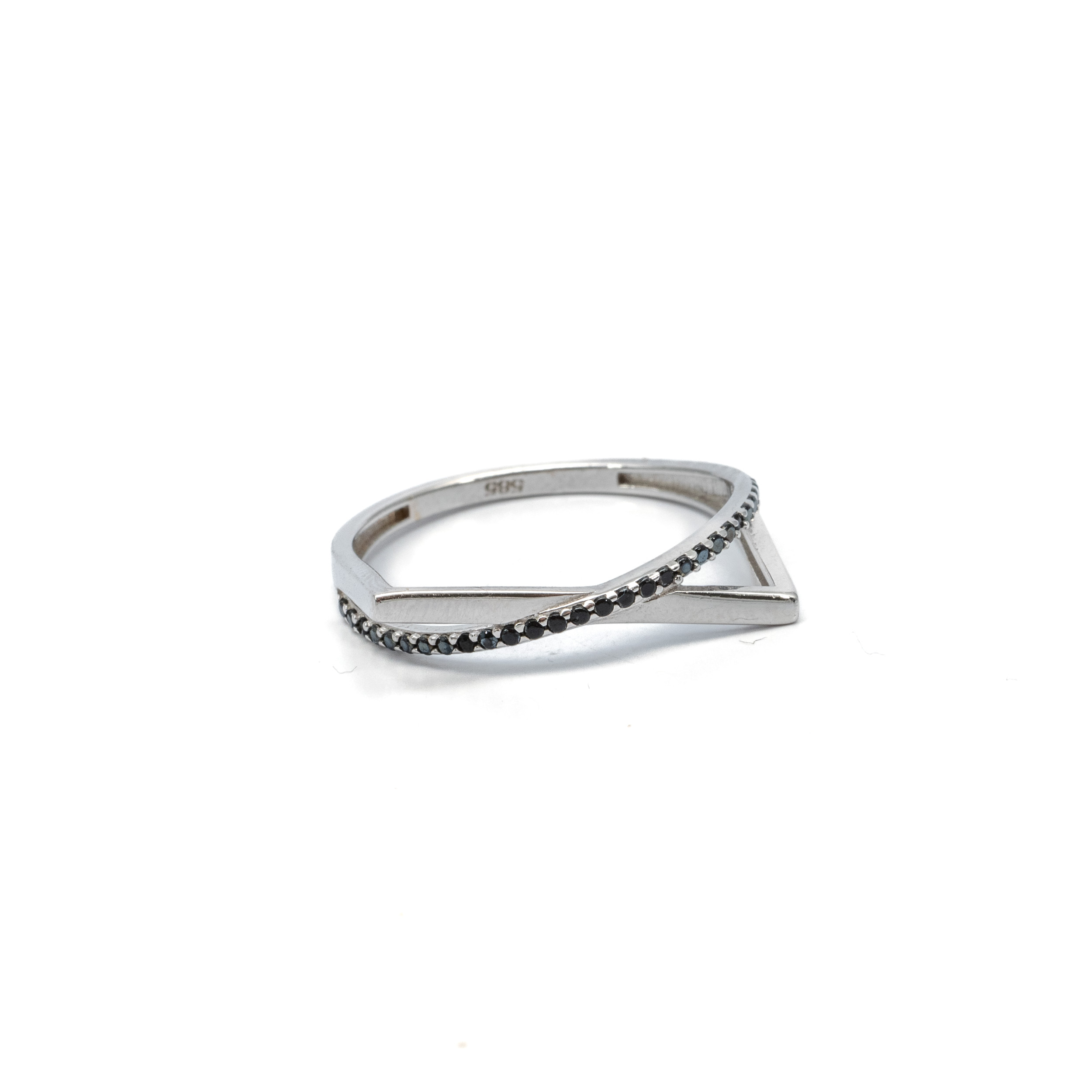 14K Női fehérarany gyűrű fekete cirkónia kövekkel