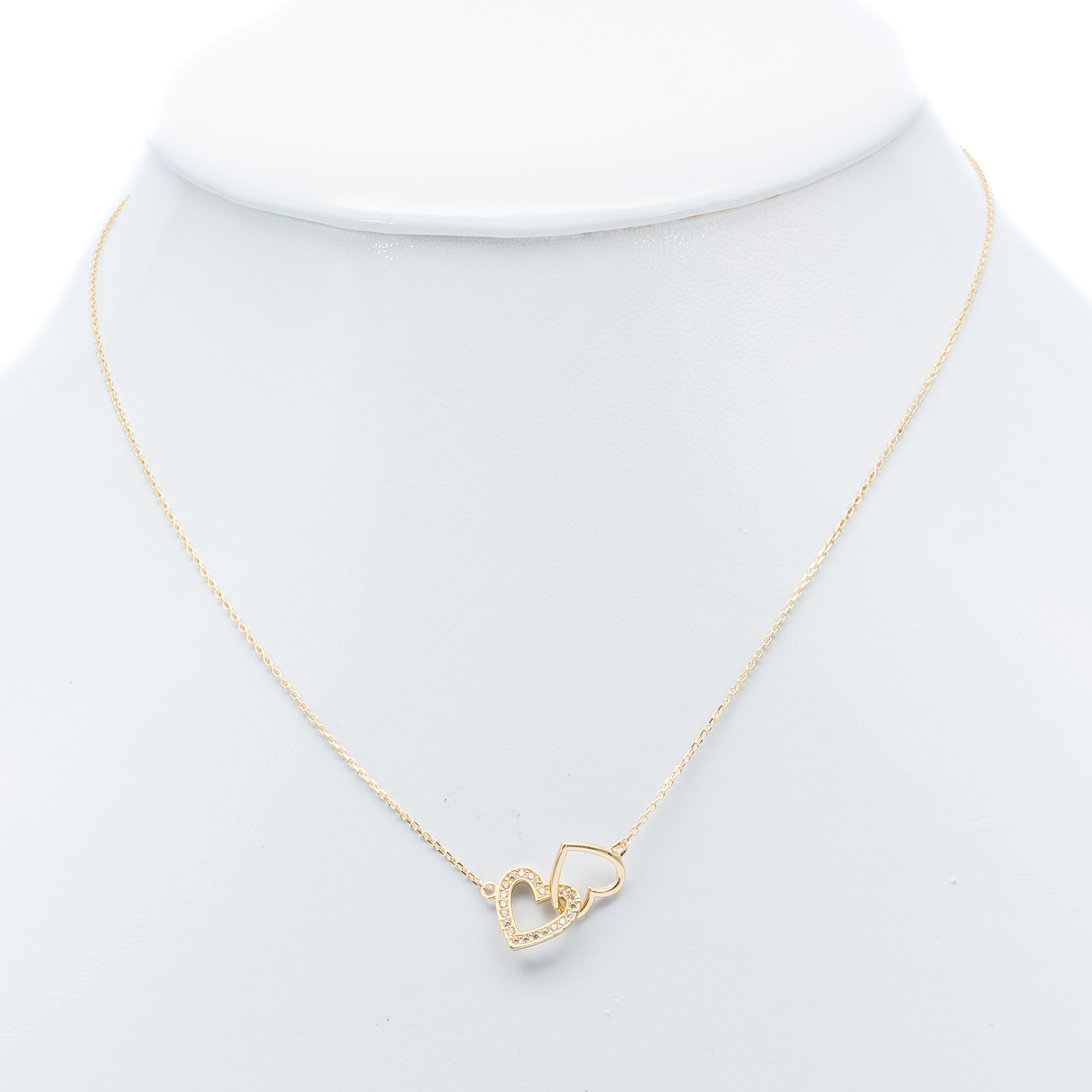 14K Női arany összefonódott szív medálos cirkónia köves nyaklánc