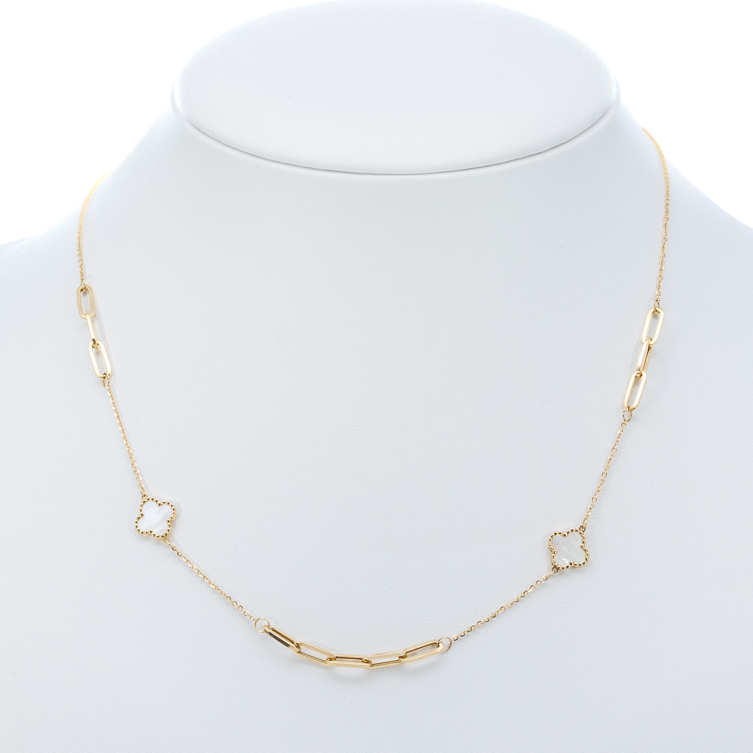14K Női arany lóhere fehér kagylóhéj nyaklánc