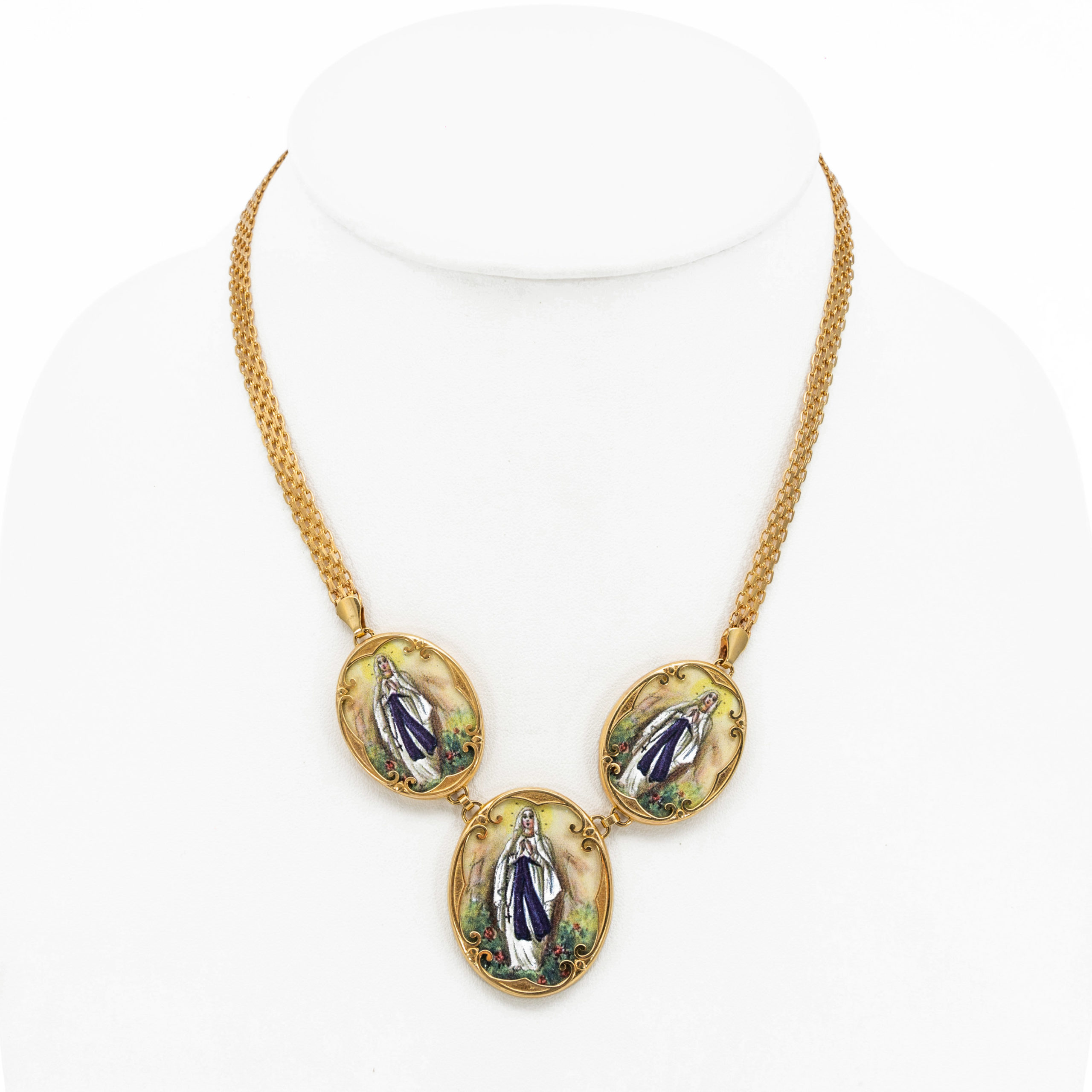 14K Női arany Szűz Mária porcelán medálos nyakék