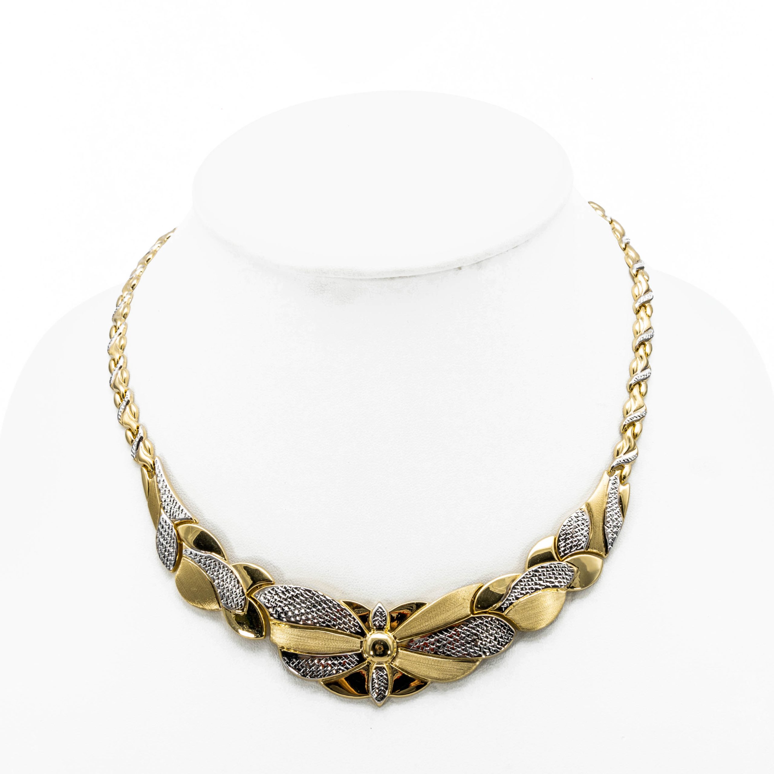 14K Női arany-fehérarany virágos nyakék