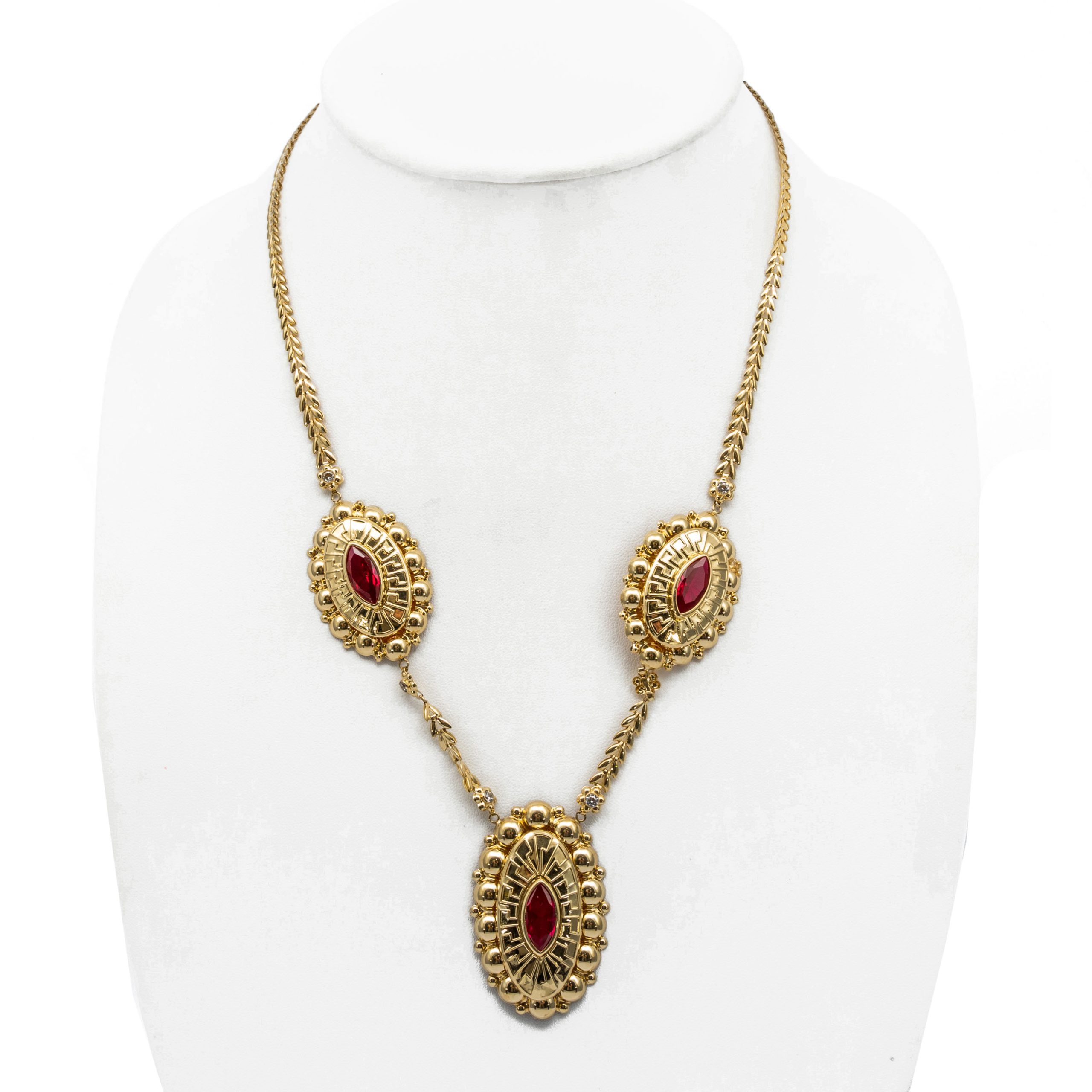 14K Női arany mandula szemes piros-fehér cirkónia köves nyakék
