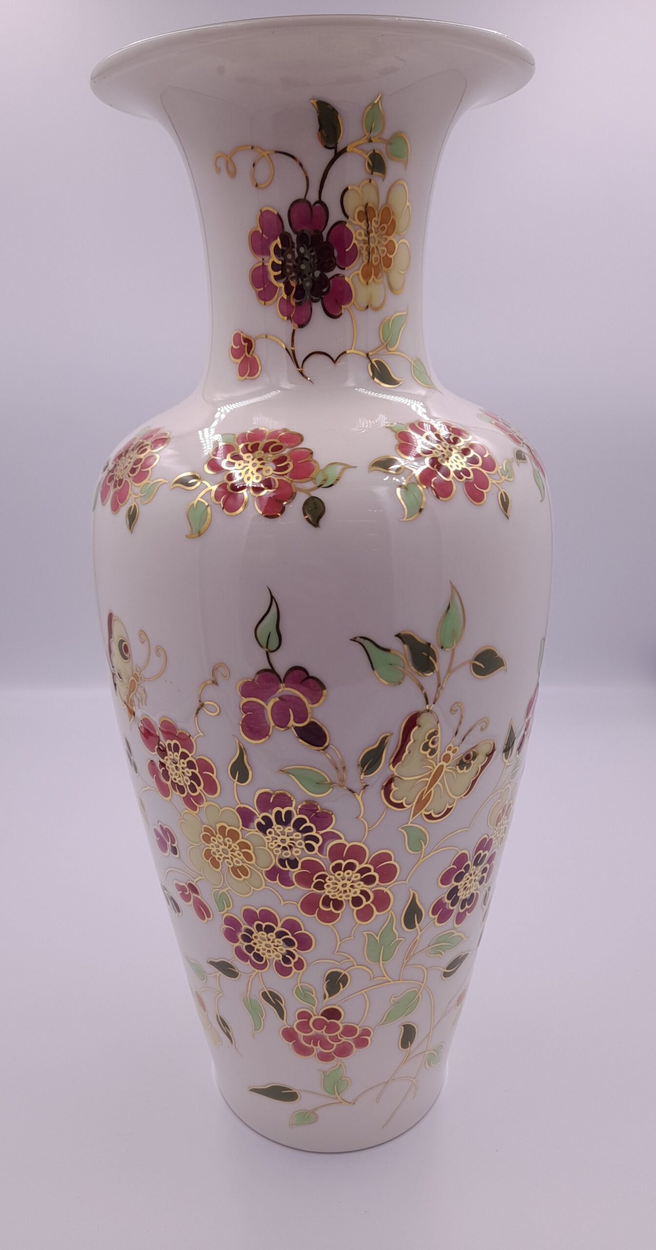 Zsolnay pillangós nagy méretű váza. Hibátlan állapotban. Aranyozása nem kopott, belső felülete is újszerű állapotban. Mérete 33×15 cm