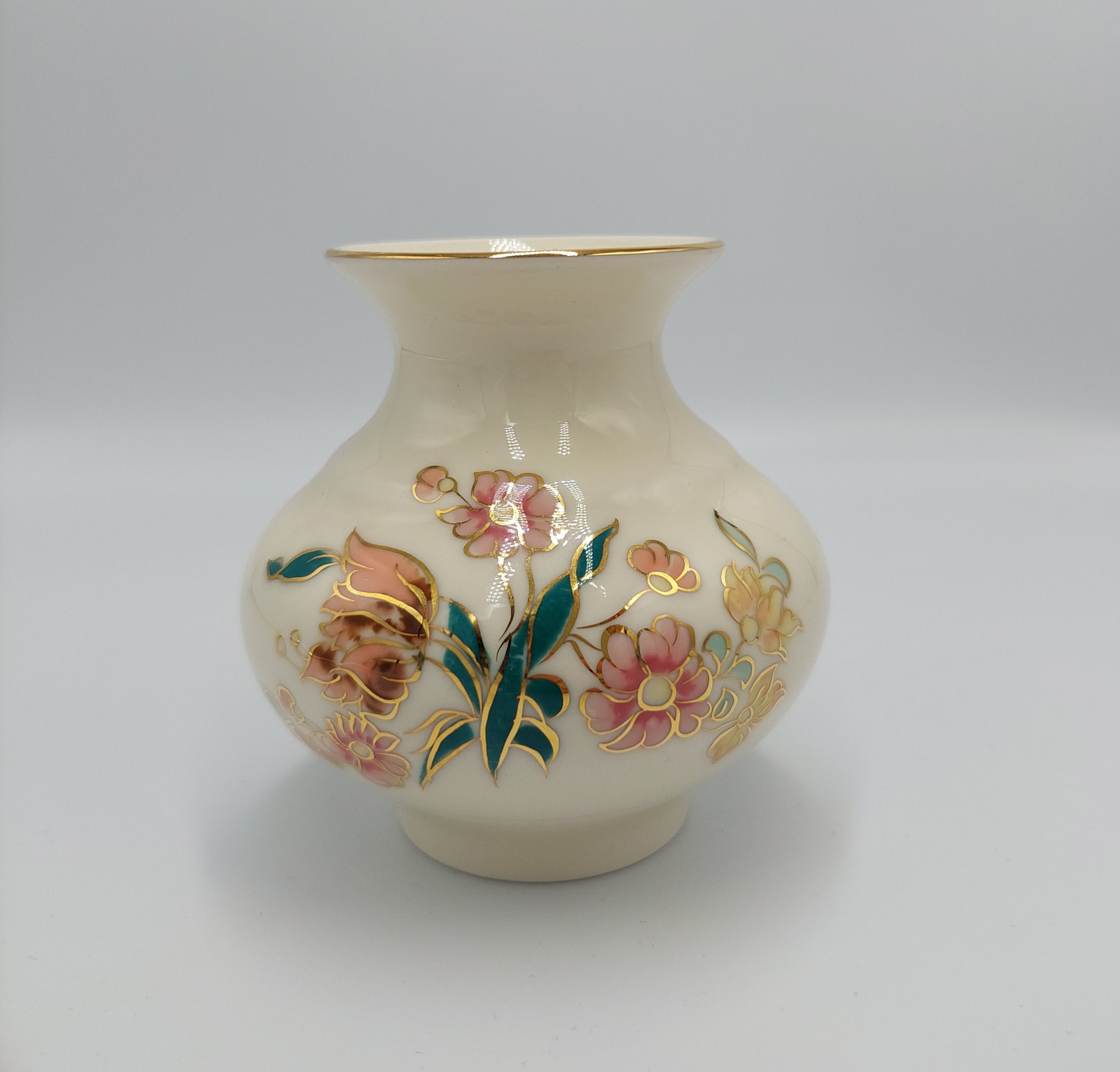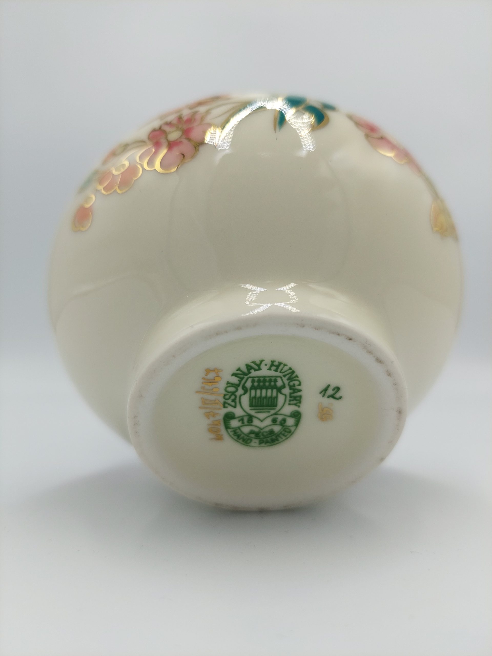 Zsolnay váza,virág mintával, mázrepedések nélkül, aranyozása, belső felülete teljesen ép.