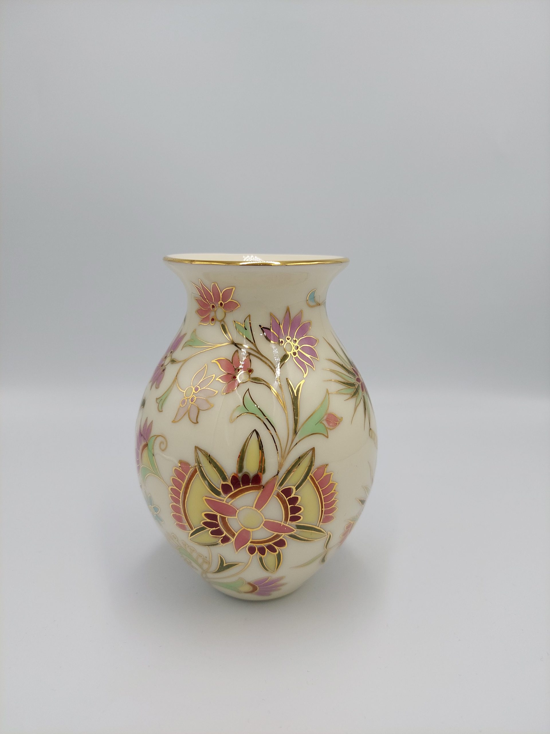 Zsolnay váza,dúsan díszített virág mintával, mázrepedések nélkül, aranyozása, belső felülete teljesen ép.