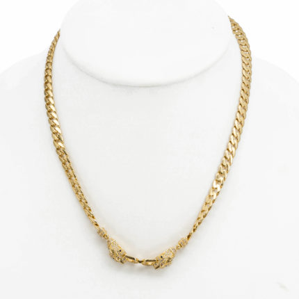 14K Női arany pancer párduc fejes cirkónia köves nyakék