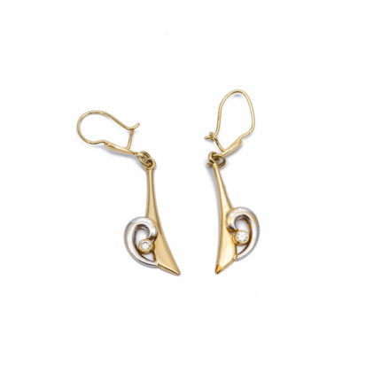 14K Női arany-fehérarany cirkónia köves beakasztós fülbevaló